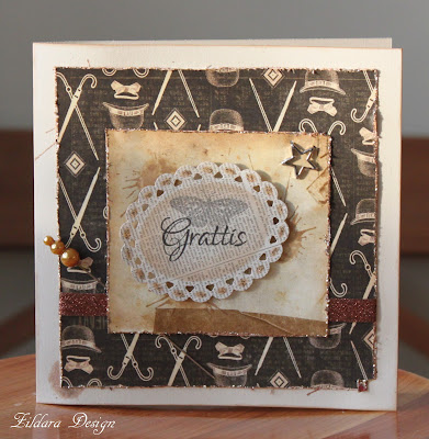 Stellas har alltid minst en riktigt klurig tävlingsgren med. I den här tävlingen var det Former. Man skulle skapa med en oval, något avlångt, en cirkel, en stjärna och en fyrkant. Jag klurade länge, men kom på att jag ju hade en oval die, så då utgick jag från den och från de dämpade, "manliga" pappren i kitet för att göra ett avskalat manligt kort.